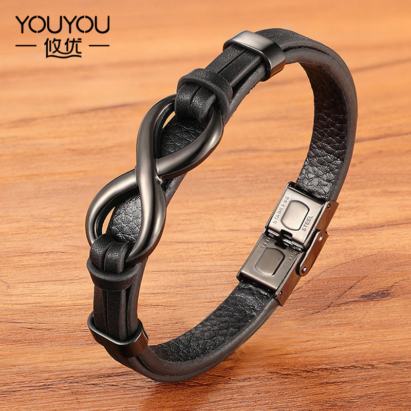 European and American Hot Selling Men's Leather Digital 8 Stainless Steel Magnetic Buckle Leather Leather Strap Bracelet Leather Bracelet Leather Strap Woven