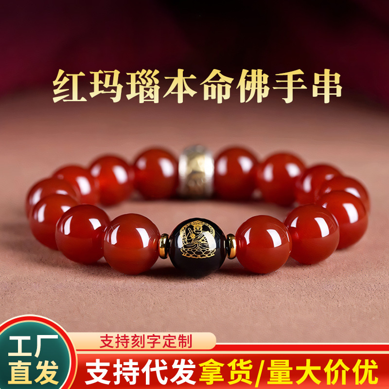 Wholesale 7A Grade Red Agate Twelve Zodiac Patron Saint Bracelets for Men and Women, Natural Agate Buddha Beads