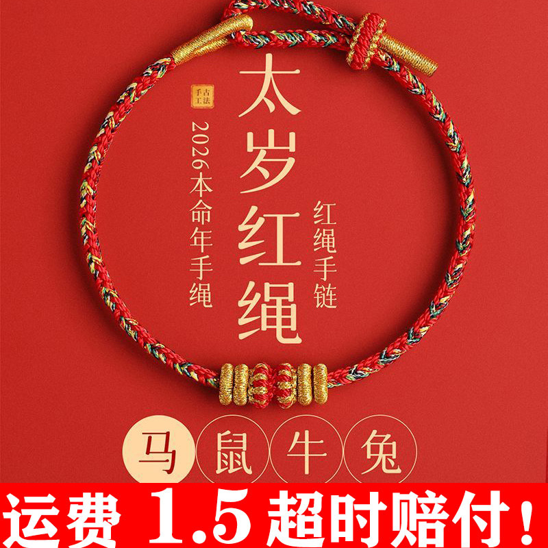 Benmingnian Little Red Rope Body Protection Bracelet Ping An Wangyun Hand Rope Male Anklet Student Couple Simple Creative Gift