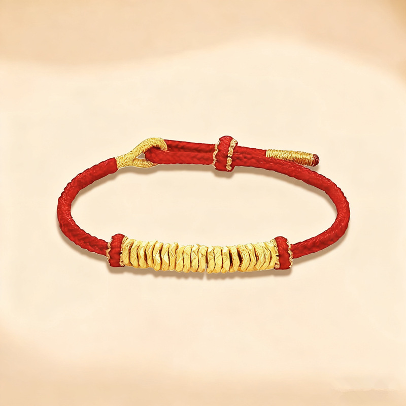 Red Rope Braided Gold Color Plate Bracelet with Broken Gold Couple's Zodiac Year Red Bracelet as a Gift for Boyfriend and Girlfriend