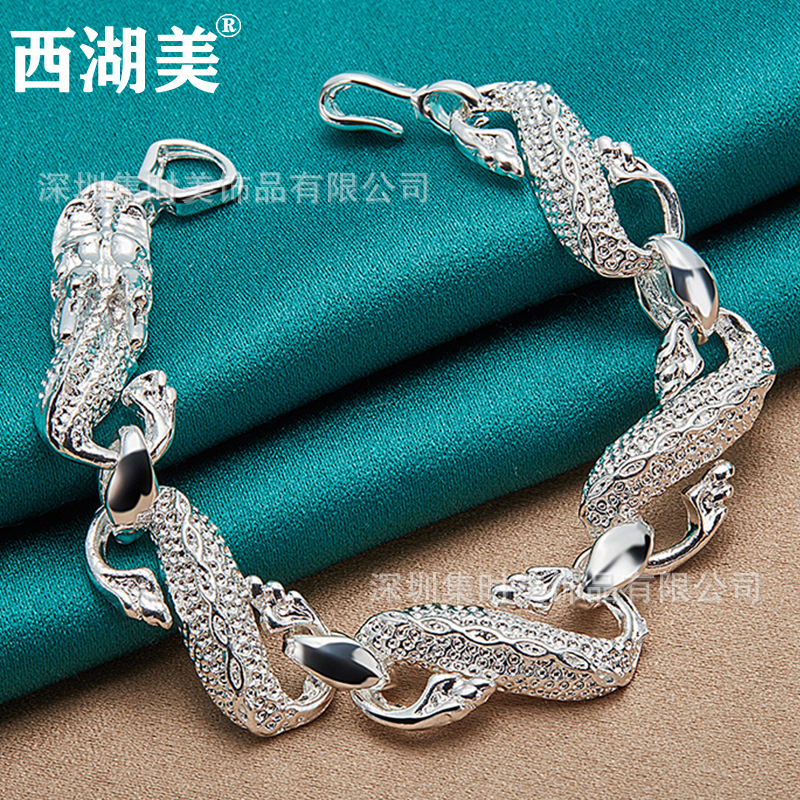 West Lake beautiful silver jewelry Chinese style White Dragon silver bracelet men's jewelry jewelry