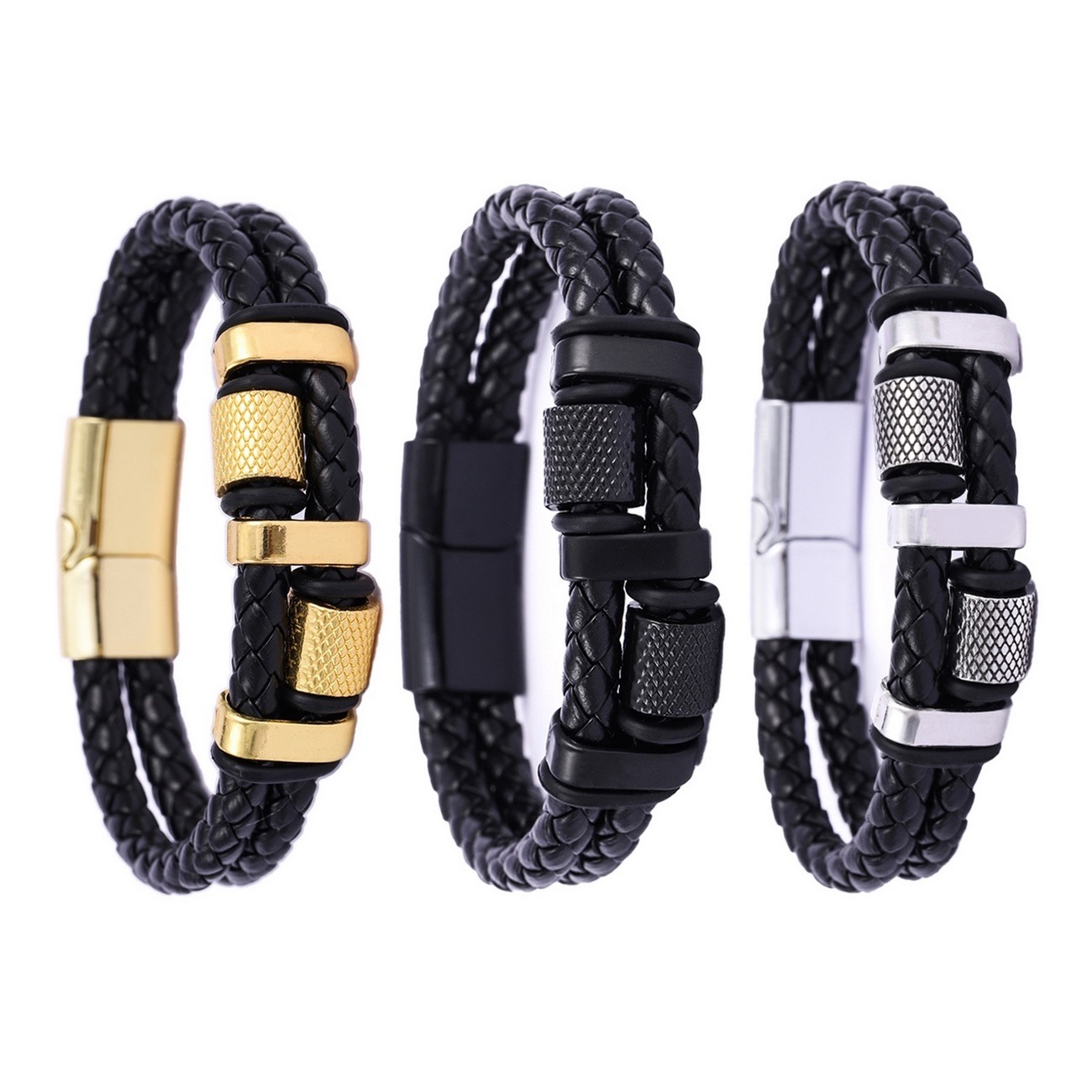 Foreign Trade European and American Fashion Leather Bracelets Retro Beaded Men's Multi-Layer Braided Leather Bracelets Magnetic Buckle Versatile Accessories
