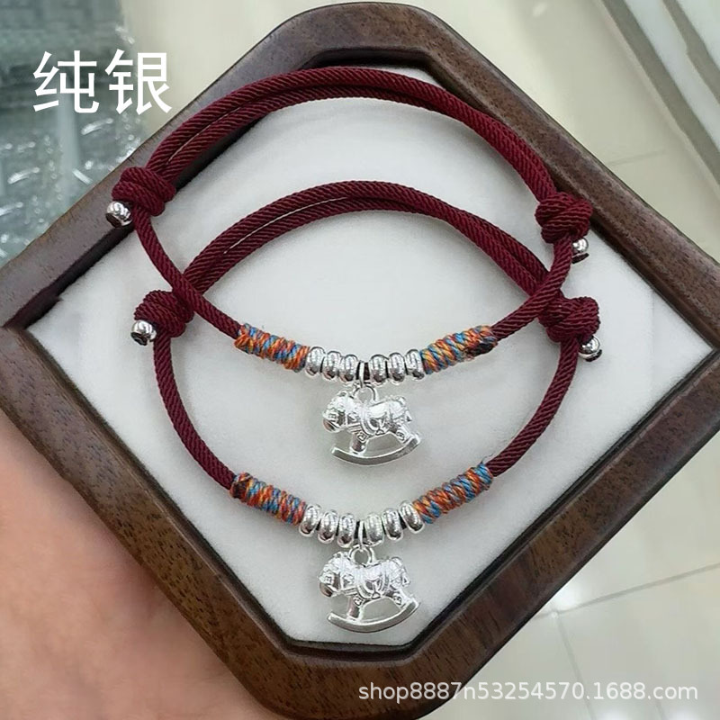 Pure Silver 999 Sterling Silver Year of the Horse Zodiac Year Red Rope Bracelet for Men and Women Couple Zodiac Horse New Year Gift for Best Friend