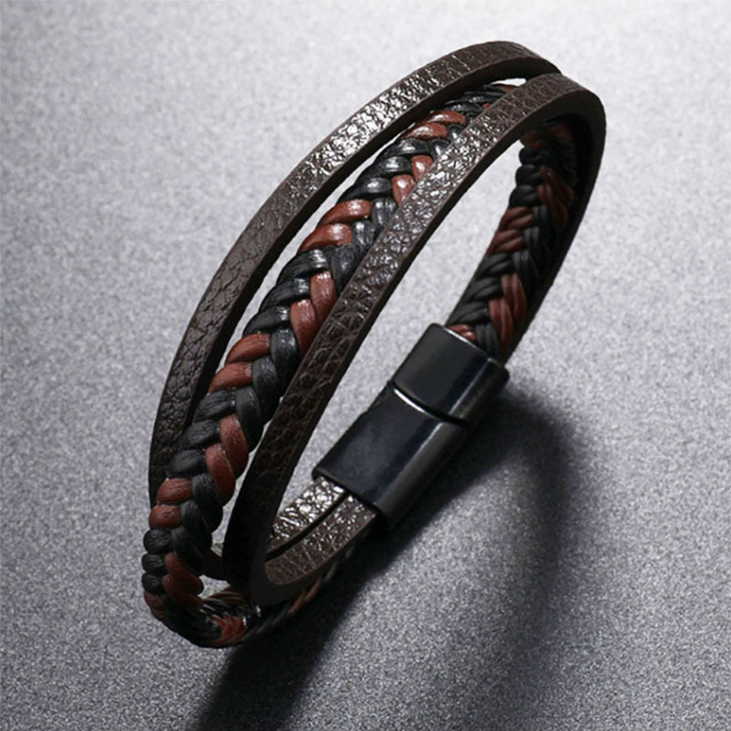 Amazon Hot Selling Men's Multi-layer Hand-woven Bracelet Cross-border Fashion Jewelry Leather Magnetic Buckle Vintage Bracelet