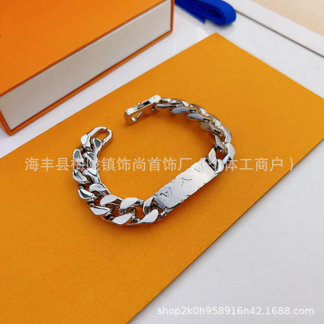 Hip-Hop Trendy Cool Square Brand Old Bracelet for Women Ins Simple Niche Cold Style Personalized Design Double-Layer Hand Jewelry for Men