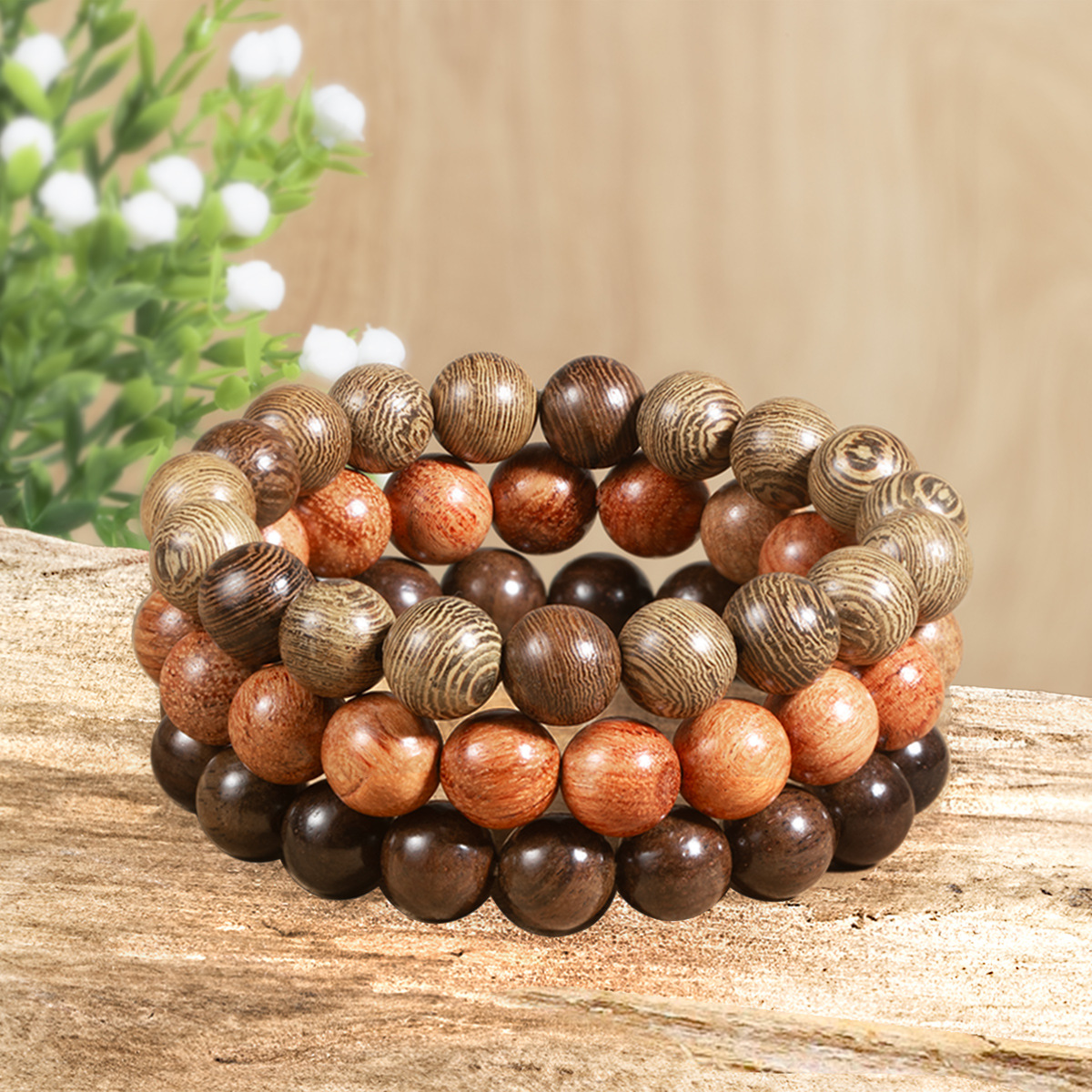 Cross-border fashion retro style resin beads random natural grain wood beads elastic men's bracelet 3 pieces