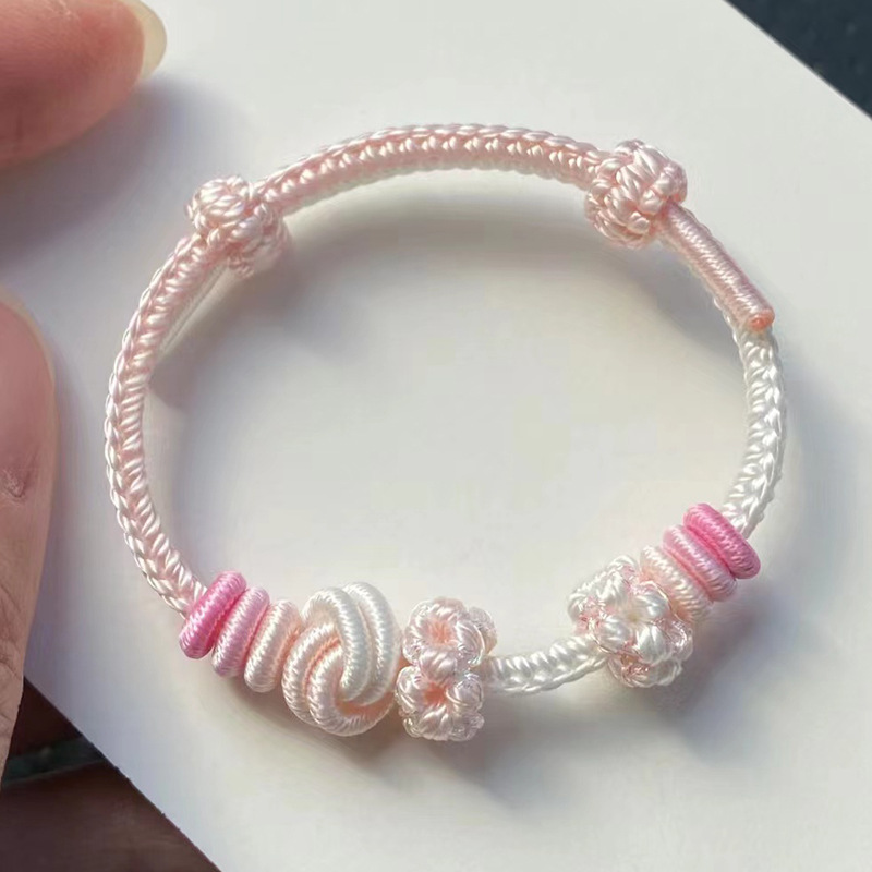 2024 new peach blossom knot braided rope bracelet semi-finished beads can wear pendant dimple knot braided hand rope men and women