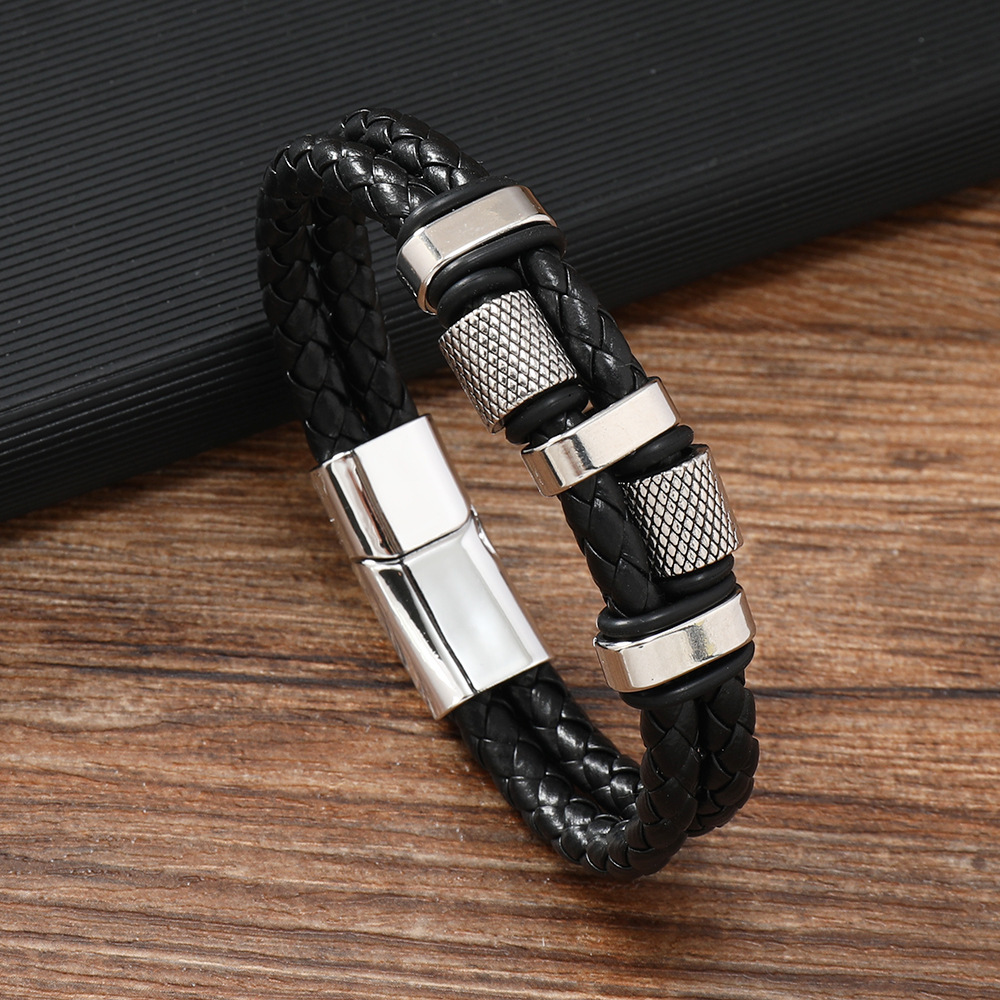 Cross-Border Men's Multi-Layer Leather Braided Simple Bracelet Alloy Magnet Buckle Accessories Ins Style Popular Bracelet Jewelry