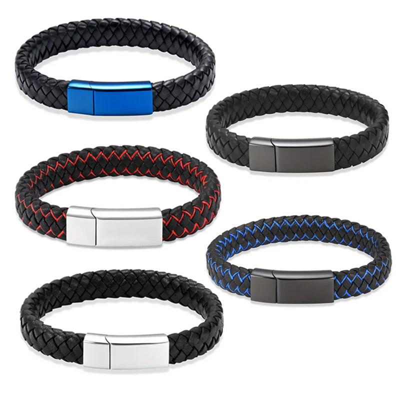 [Explosions] Cross-border leather bracelet handmade bracelet chain woven men's leather bracelet stainless steel snap button