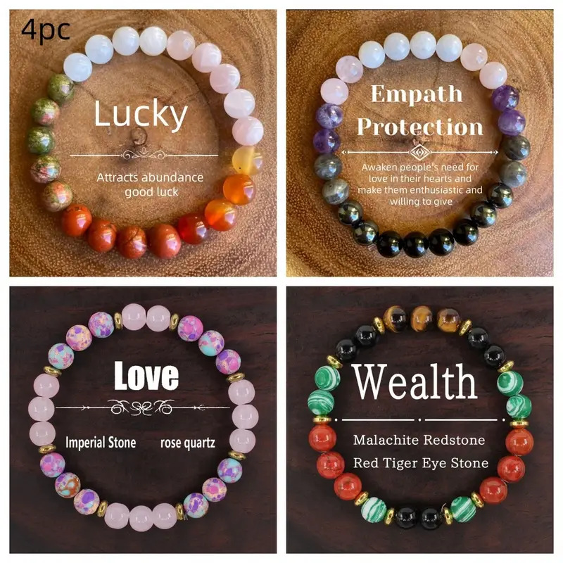 TEMU HISYIN TK Cross-border Explosions 8MM Emperor Stone Powder Crystal Tiger Eye Green Peacock Bracelet Men's and Women's Fashion