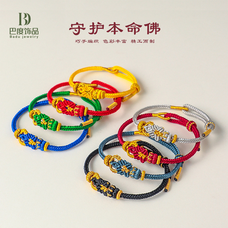 Eight Guardian Deities Birth Year Buddha Men's and Women's Handmade Braided Bracelet Twelve Zodiac Fortune-Transferring Braided Rope Birth Year Red Rope