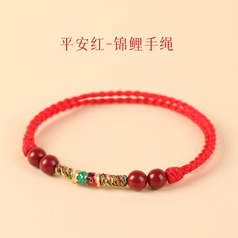Lucky Koi Bracelet, Good Luck Bracelet for Women, Cinnabar Anklet for Men, Red String Woven Bracelet, Trendy DIY Bracelet