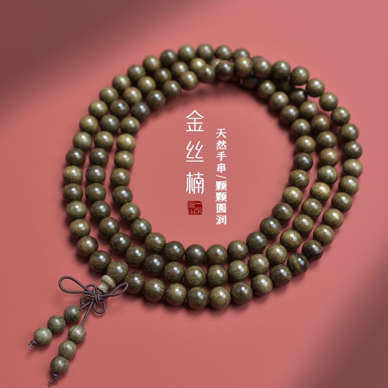 Natural Yin Sinking Golden Silk Nanmu 108 Bracelet Green Material Ebony Buddha Beads Sandalwood Rosary Beads Men's and Women's Bracelet Hold