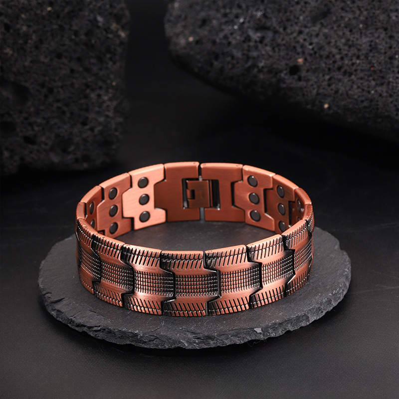 Cross-Border Niche Red Copper Bracelet Factory Direct Sale Three-Row Magnetic Men's Bracelet European and American Fashion Retro Couple Jewelry