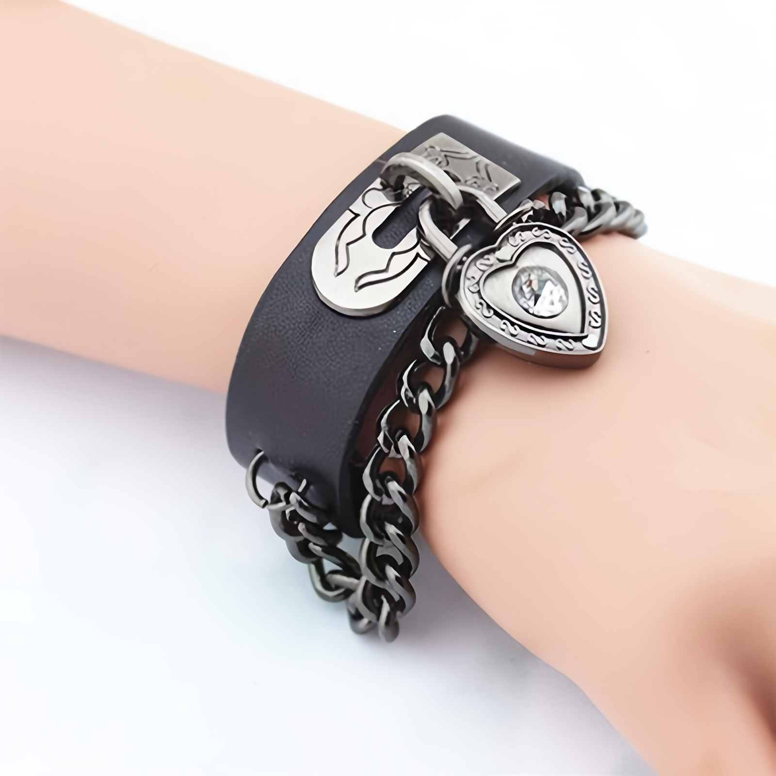 Cross-Border New European and American Men's Bracelets, Personalized Leather Wrist Decorations, Punk Rock Style Bracelets Wholesale