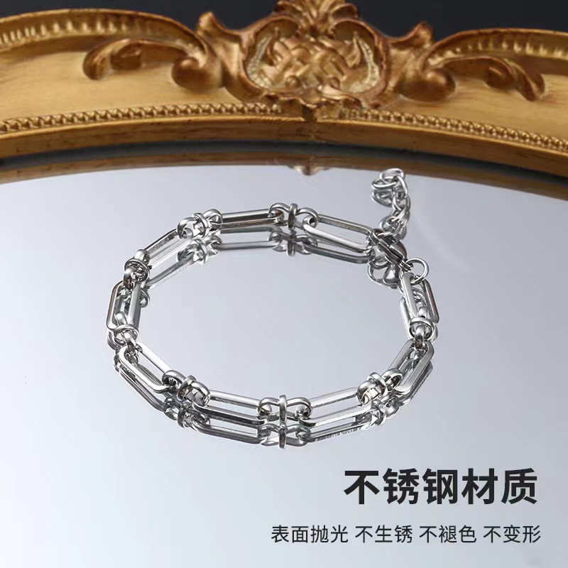 European and American titanium steel men's handmade square chain bold stainless steel bracelet metal trend men's and women's bracelet manufacturers straight