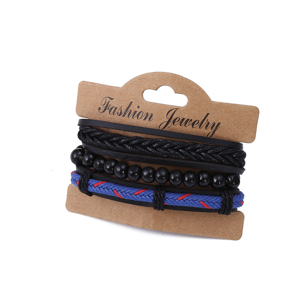 European and American Men's Handmade Woven Bracelet Vintage Set Bracelet DIY Woven Cowhide Bracelet Fashionable Cool Men's Bracelet