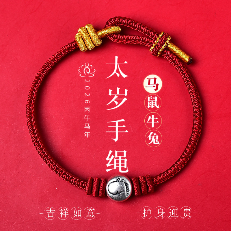 2026 Is the Year of the Horse, Auspicious to Wear Bracelets for Women, Silver Zodiac Bracelets for Men, Braided Ropes, Tai Sui Ropes