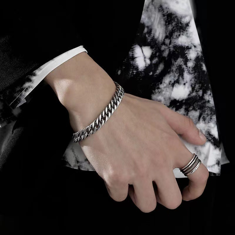 Cuban Bracelet Men's Trendy High-end Sense Niche Simple and Generous Titanium Steel Men's Bracelet Trendy Men's Personality Men's Jewelry Women