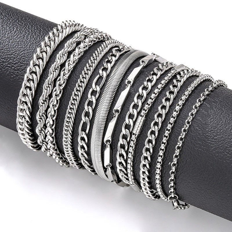 Cross-border explosions men's bracelet 12-piece stainless steel Europe and the United States do not fade Cuban chain fashion Joker titanium steel ornaments