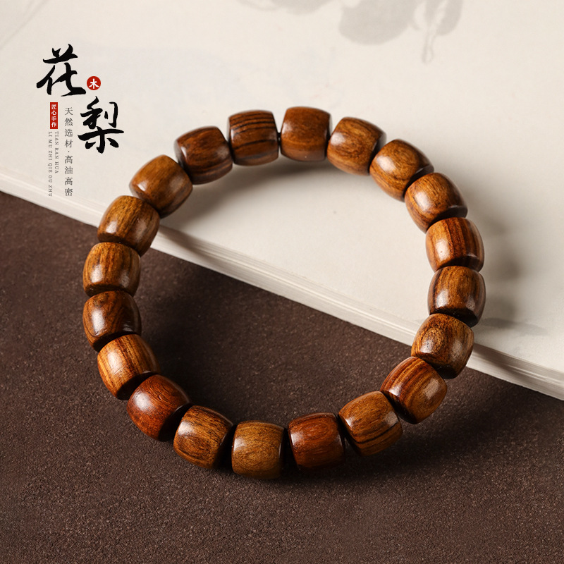 Seiko Oil Run Huali Straight Cut Barrel Beads Drum Beads Handstring Sandalwood Bracelet Men's and Women's Retro Wen Play Buddha Beads Wholesale