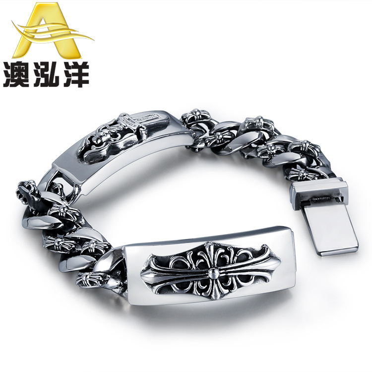 European and american fashion cross titanium steel bracelet men's personality retro stainless steel cross flower bracelet HL009
