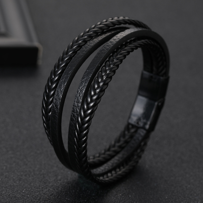 2019 Amazon AliExpress new hot selling pu leather woven bracelet men's alloy magnetic buckle bracelet