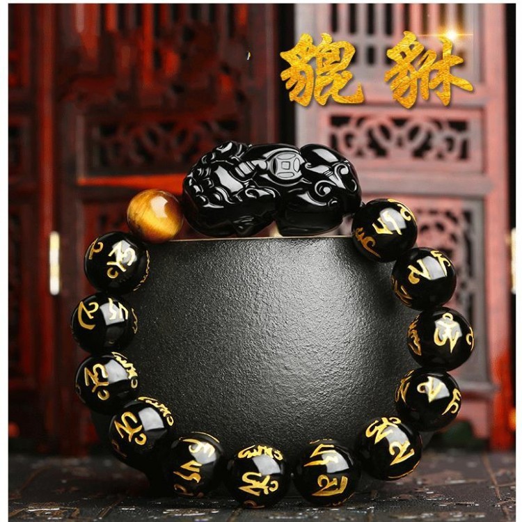 Wholesale natural obsidian six-son mantra bracelet for men and women brave bracelet color red eye chain ethnic style jewelry