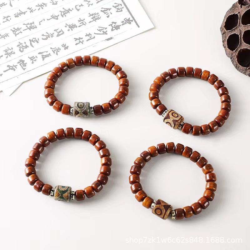 Cross-Border Popular High-End Retro National Trend Six-Character Mantra Nine-Eye Dzi Bead Bracelet Men's Rotatable Trendy Personalized Bracelet
