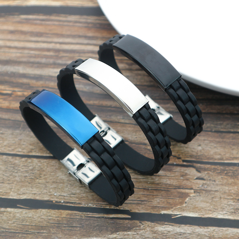 Europe and the United States cross-border jewelry wholesale silicone stainless steel sports bracelet smooth laser engraved titanium steel couple bracelet