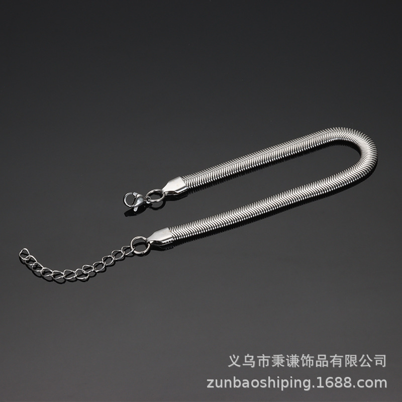 Titanium steel flat snake bracelet snake bone soft snake bone chain adjustable non-fading jewelry men's personality fashion 6mm wide bracelet
