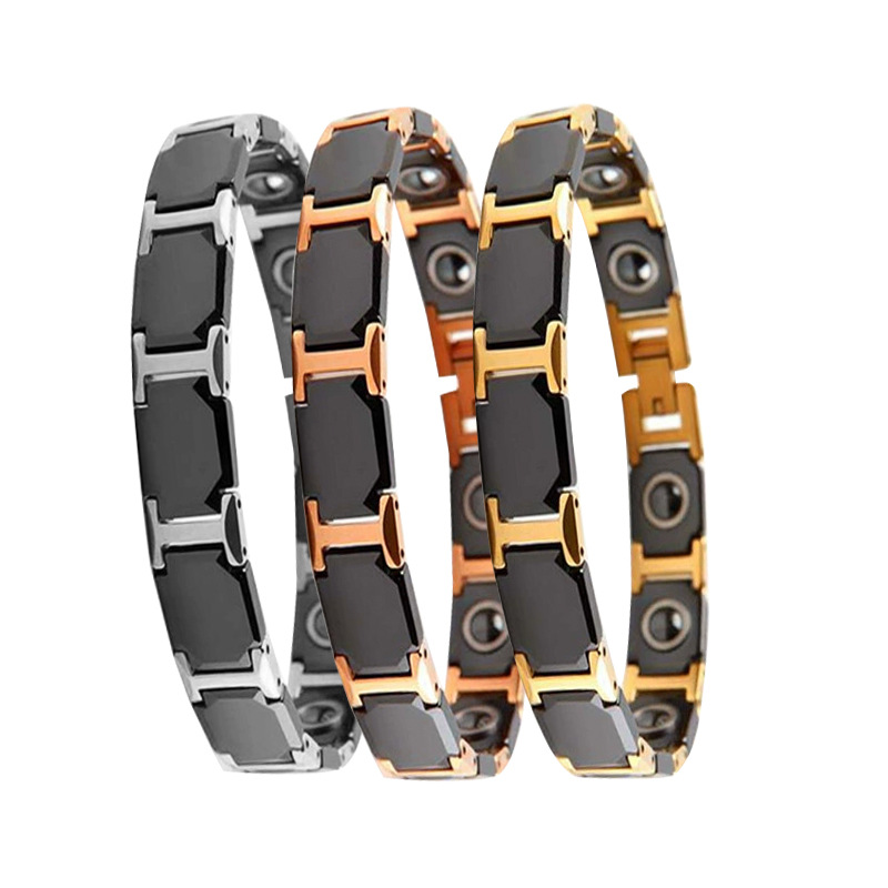 Japanese and Korean magnet bracelet titanium steel with ceramic square black ochre couple bracelet wish cross-border small e-commerce