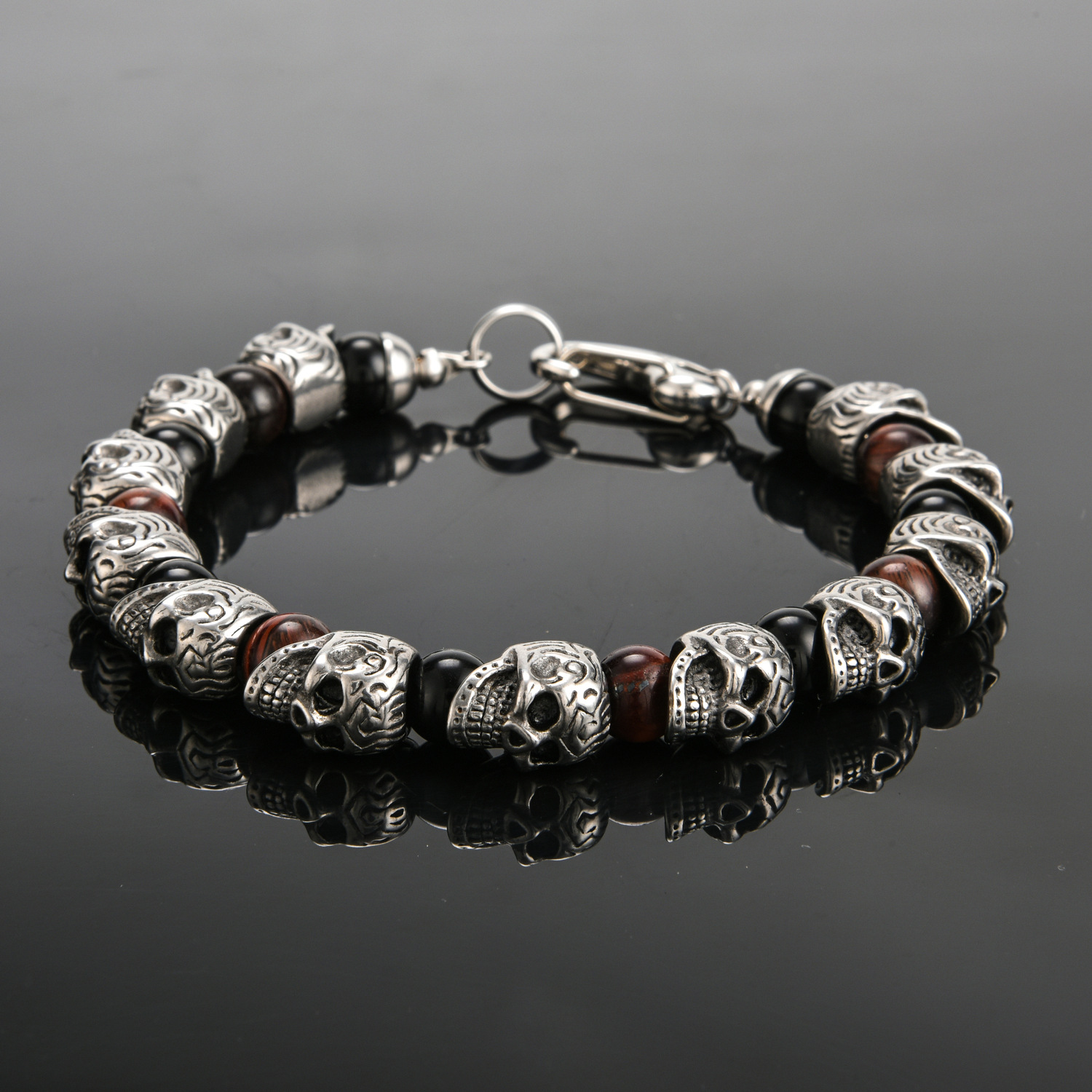 Bead Bracelet newly listed 2023 new stainless steel skull bracelet high quality natural stone beaded bracelet