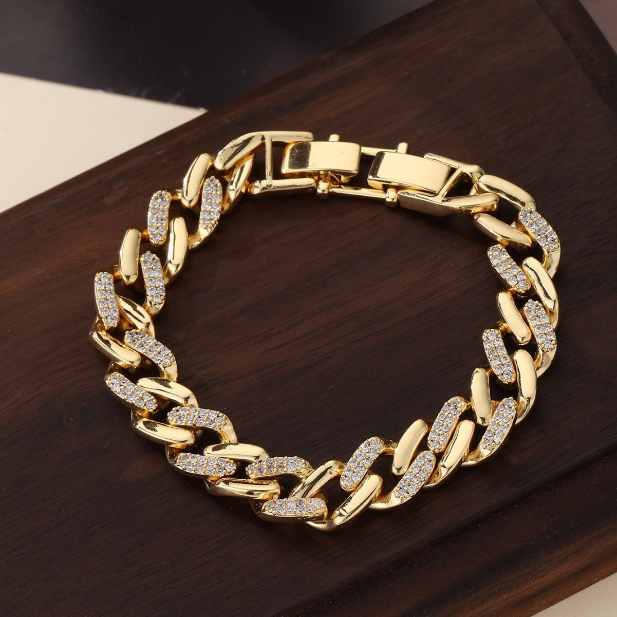 Trendy European and American Hip-Hop Jewelry Half-Diamond Cuban Style Men's Bracelet High-End Infinity Style Fashion Trendy Bracelet