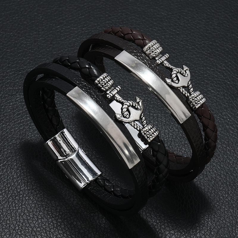 New European and American fashion alloy anchor leather bracelet men's multi-layer hand-woven bracelet bracelet