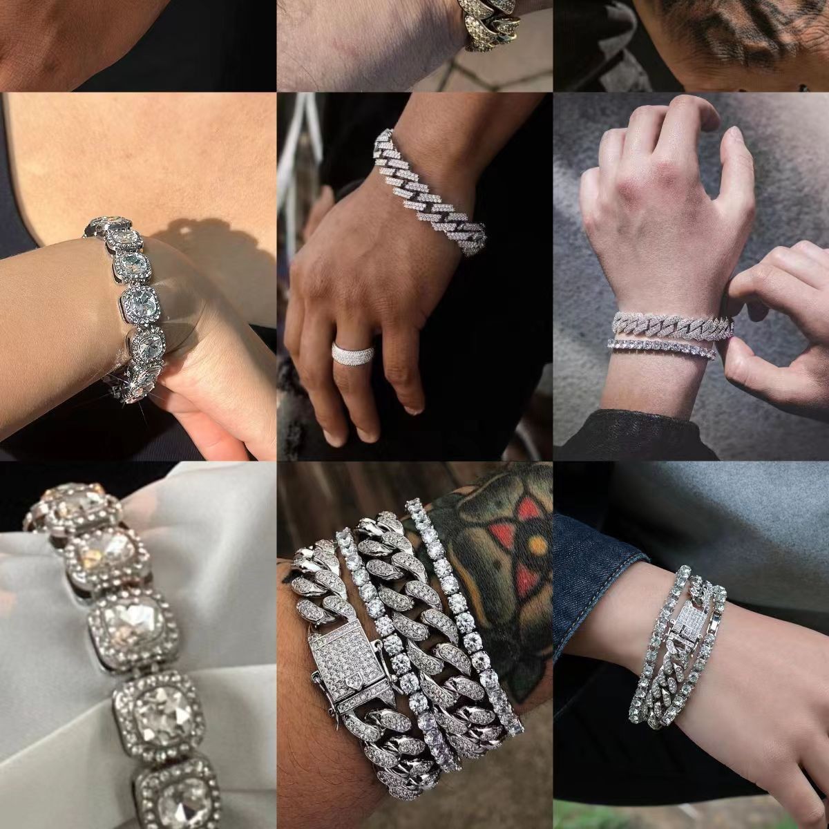 Europe and the United States cross-border hot 24AA claw chain bracelet men's hip hop diamond bracelet rhinestone chain wish explosion