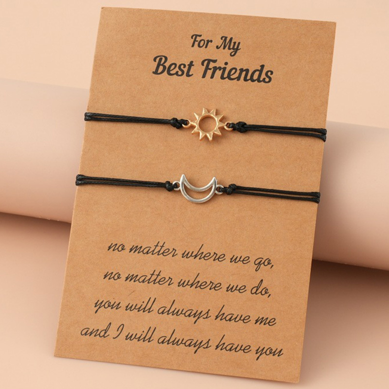 Cross-border exclusive for European and American fashion simple alloy Sun Moon star men's friendship adjustable couple card woven bracelet