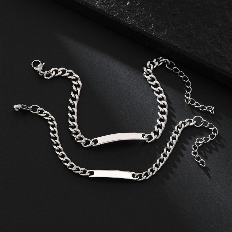 Ins Couple Titanium Steel Cuban Bracelet Can Be Engraved Classic Curved Tag Bracelet for Men and Women Simple Trendy Stainless Steel Jewelry