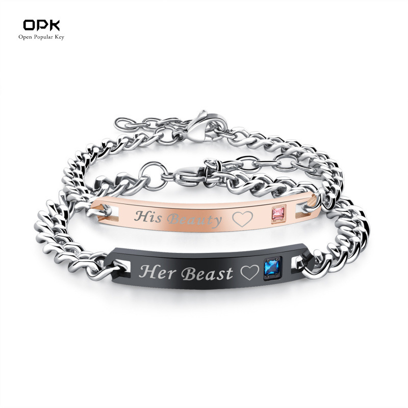 European and American Jewelry Supply Couple Bracelet Titanium Steel Couple Three-dimensional Rose Gold Bracelet Personalized Engraving Men's and Women's Accessories