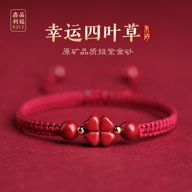 Cinnabar Ancient Style Braided Bracelet Couple Red Rope Bracelet Purple Gold Sand Animal Year Blessing Clover Men and Women Bracelet