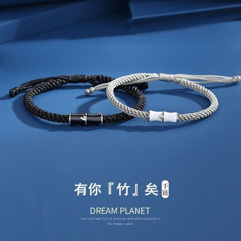 Bamboo Couple Bracelet Men and Women Ins Niche Design Round Woven Ins Trendy Student Bamboo Hand Rope Commemorative Gift