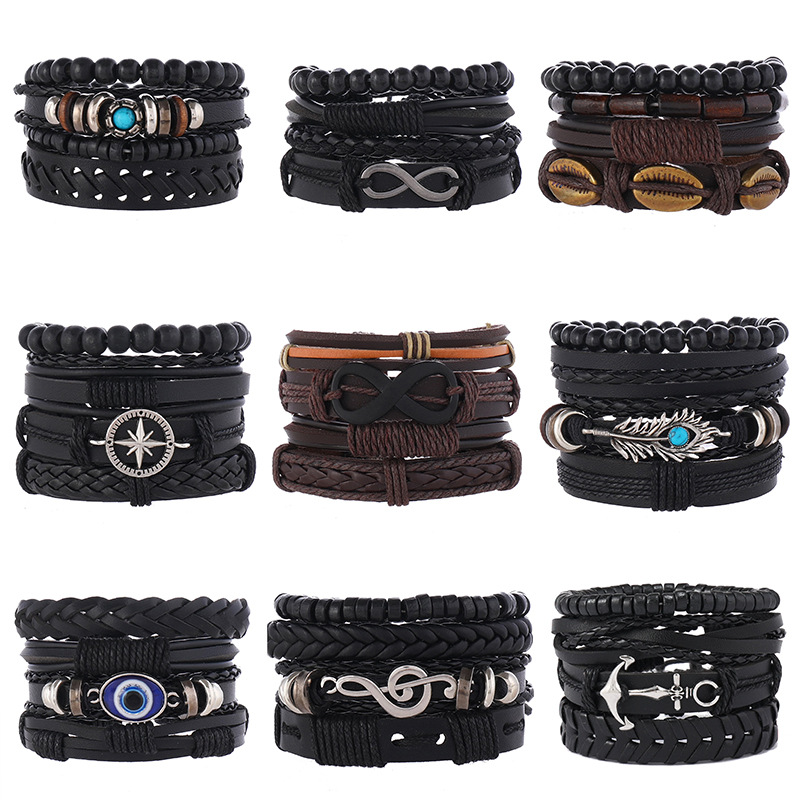 TEMU Europe and the United States cross-border new punk style men's retro multi-layer leather hand-woven leather bracelet four-piece set