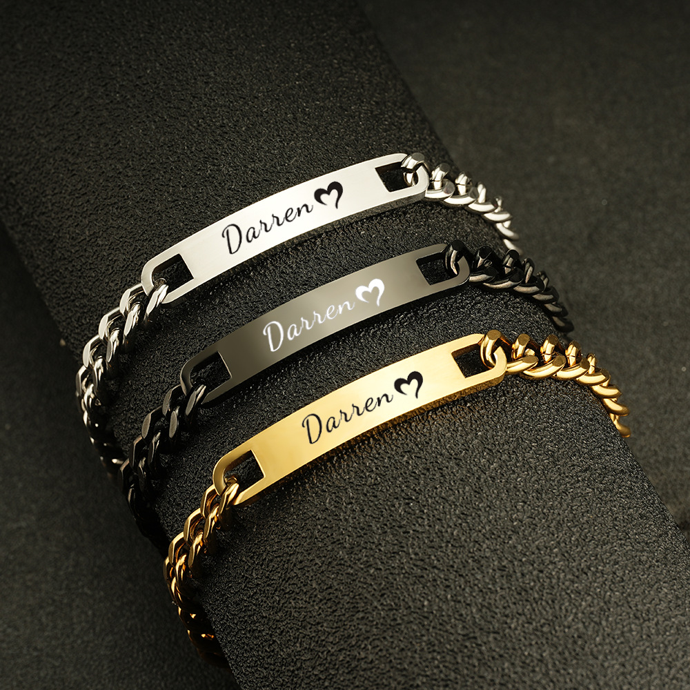 Cross-Border Amazon Hot Selling European and American Fashion Couple DIY Stainless Steel Glossy Curved Bracelet Laser Name