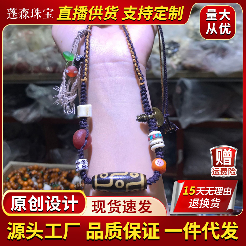 Braided Tiger Tooth Dzi Bead Necklace Handmade Jewelry for Women and Men Xizang Ethnic Style Necklace Braided Rope Chain Buddhist Beads