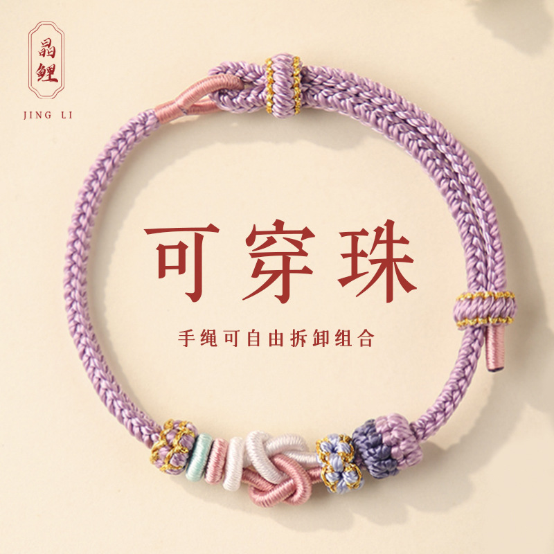 concentric knot diy hand rope female men hand woven red rope bracelet lovers can wear gold transfer beads lover girlfriends