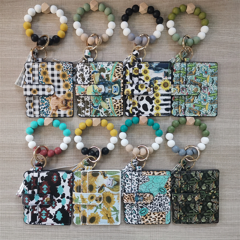 Amazon Silicone Bead Bracelet Western Cowboy Bracelet Keychain Cow Pattern Women's Card Holder Coin Purse Wholesale