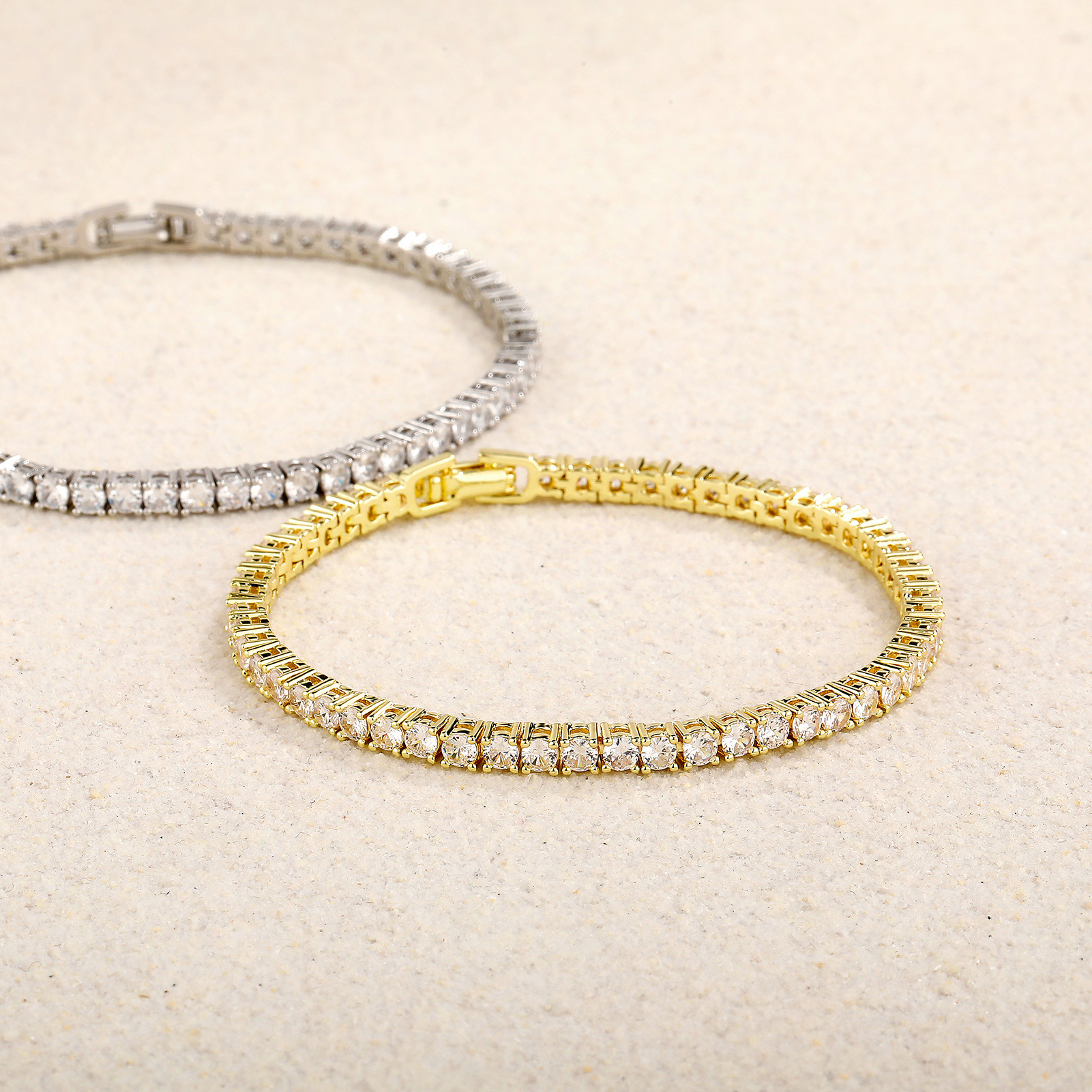 Cross-Border Box Buckle Tennis Chain Men's Bracelet European and American Stylish 3Mm4Mm Niche Hip-Hop Trendyy Women's Anklet Chain Wholesale