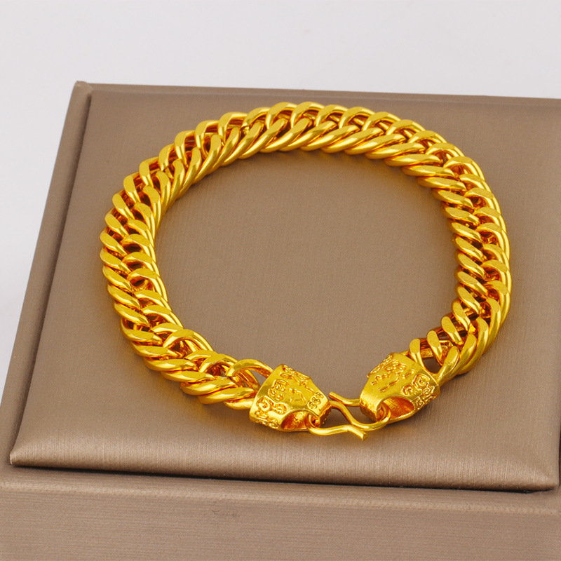Simulated Fortune Bracelet for Men, Domineering Vietnamese Sand Gold Bracelet, Boss Gold-Plated Snake Bone Chain, Presidential Chain, Steel Seal 999
