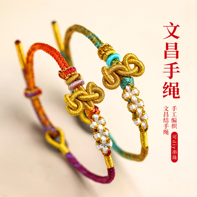 Wenchang Knot Hand Rope Braided Rope Semi-Finished Product Wearable Beads DIY Gold Finished Hand-Woven Men's Bracelet for Girls
