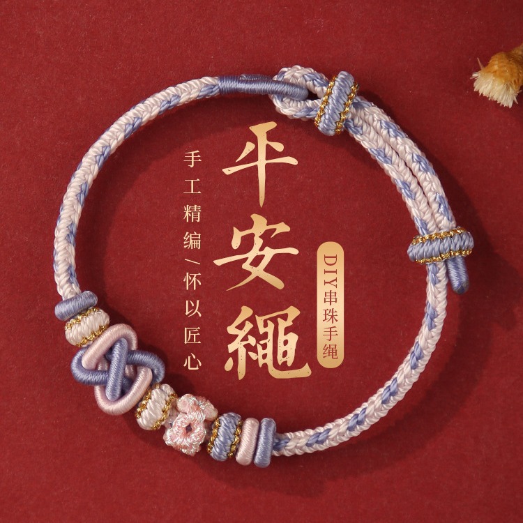 Peach Blossom Peace Knot Red Bracelet Semi-Finished Wearable Gold Passepartout Transfer Beads Hand-Woven Bracelet for Men and Women
